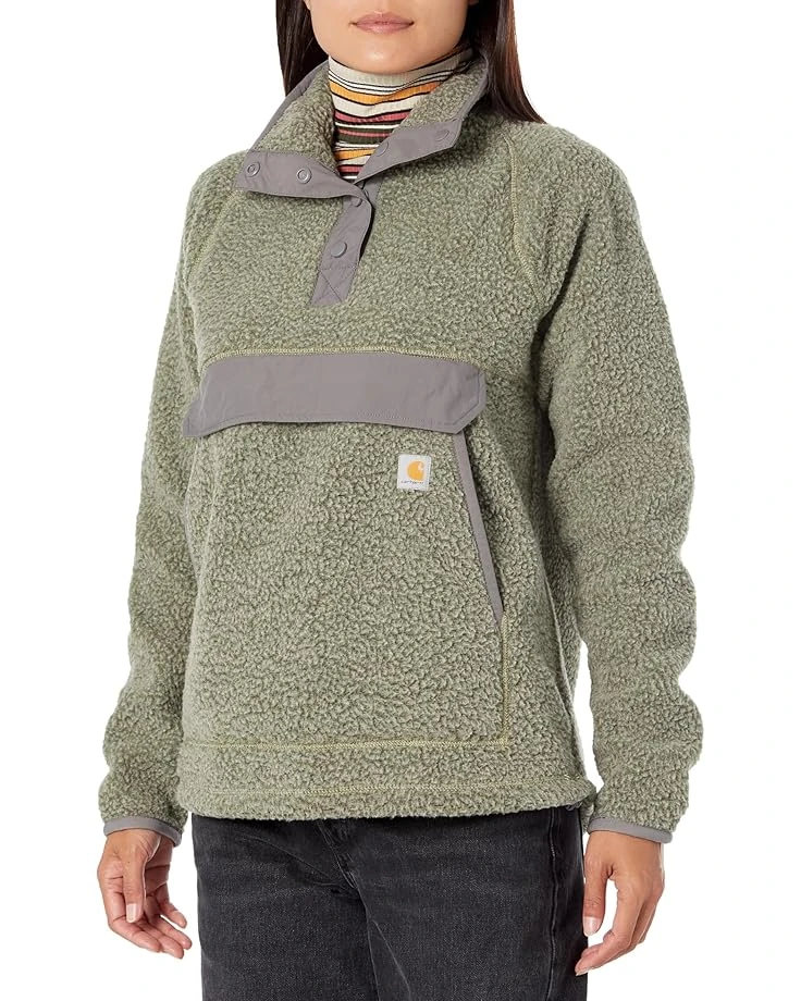 - Stay warm and fashionable in this soft, warm, and classic Carhartt® Fleece 1/4 Snap Front Jacket, perfect for morning hikes and camping.